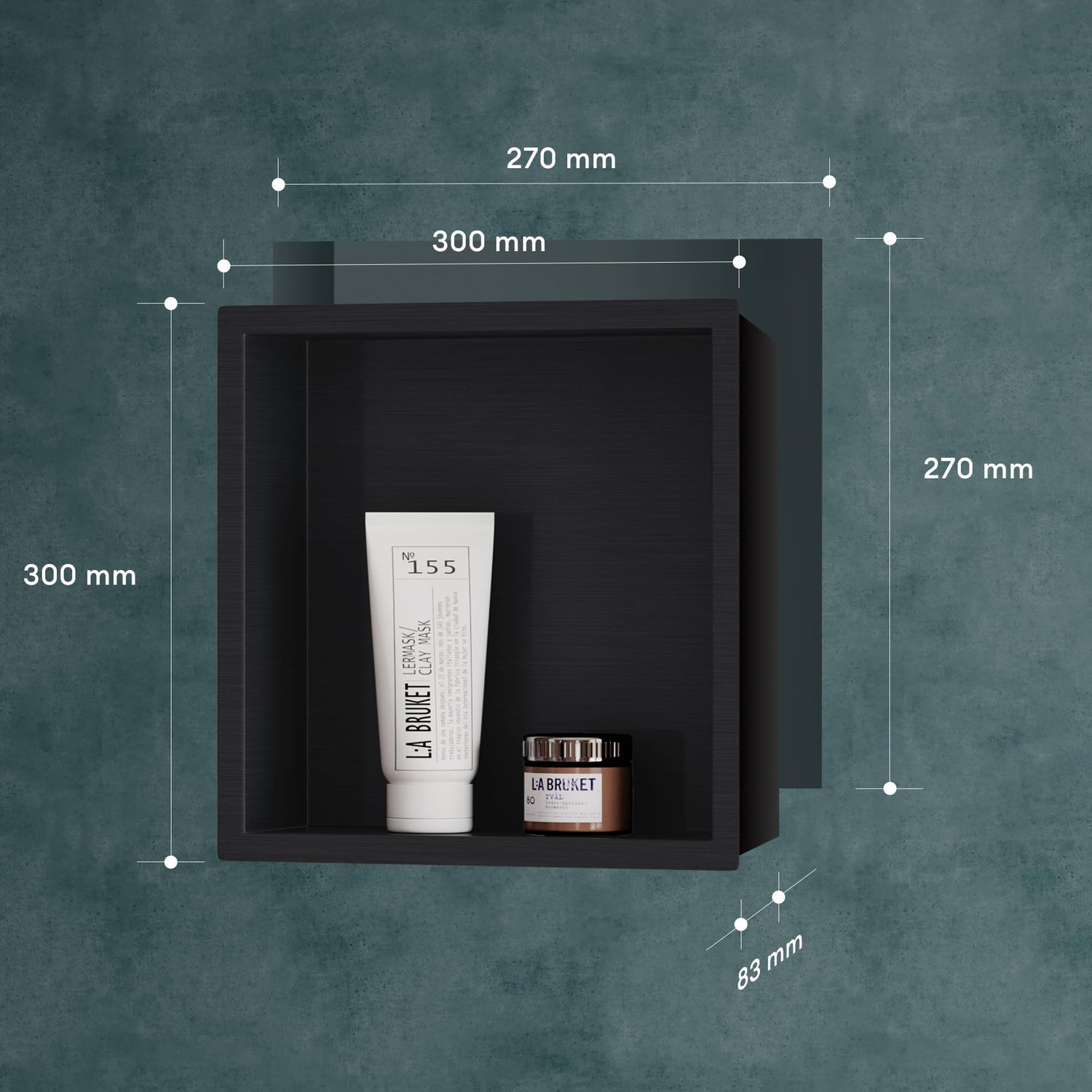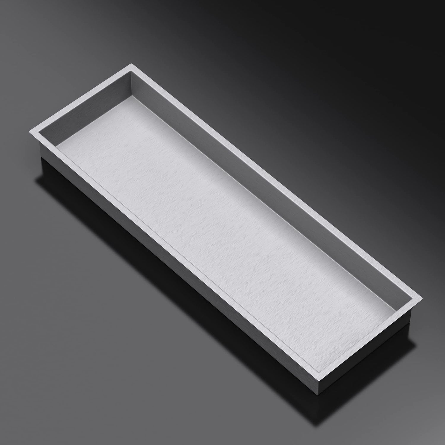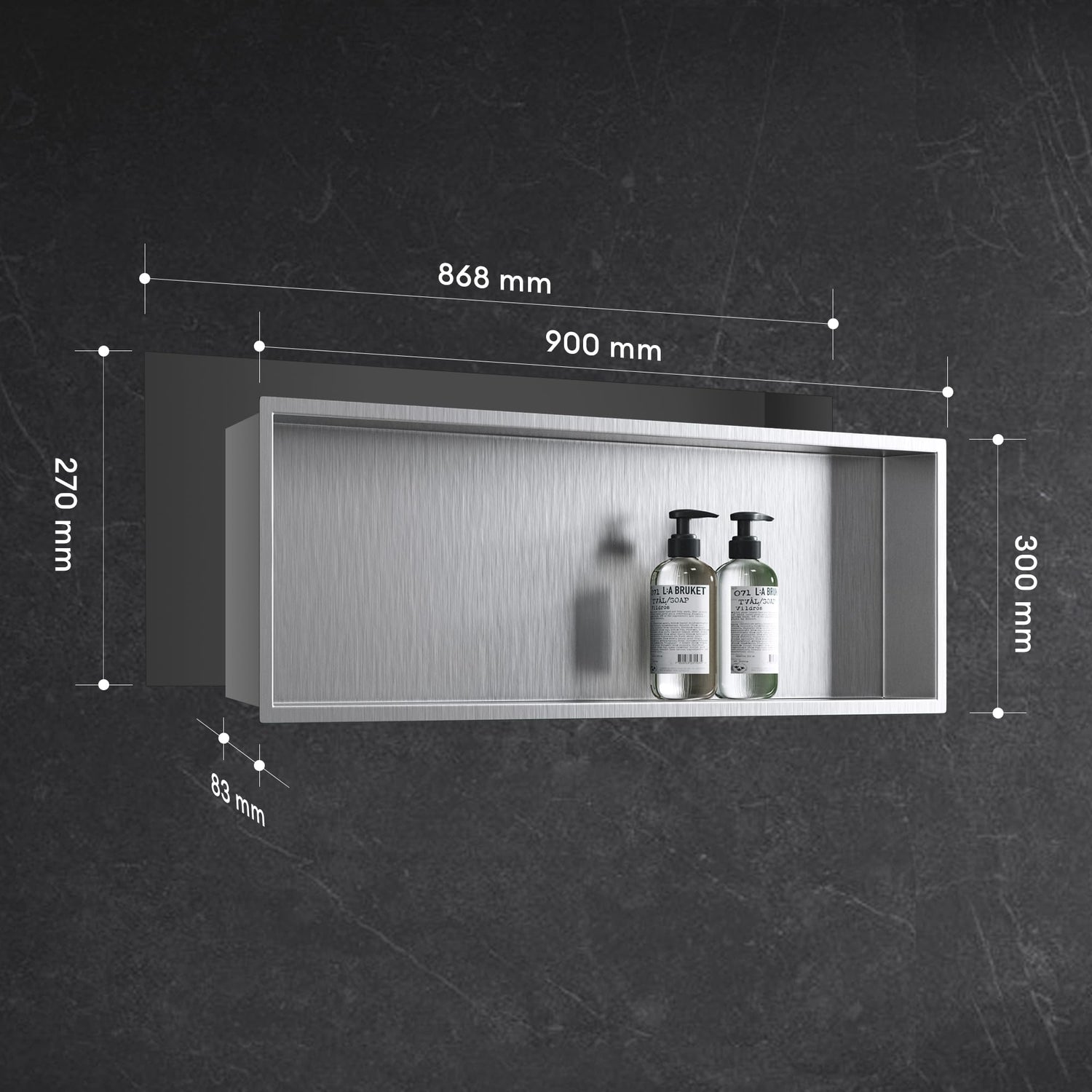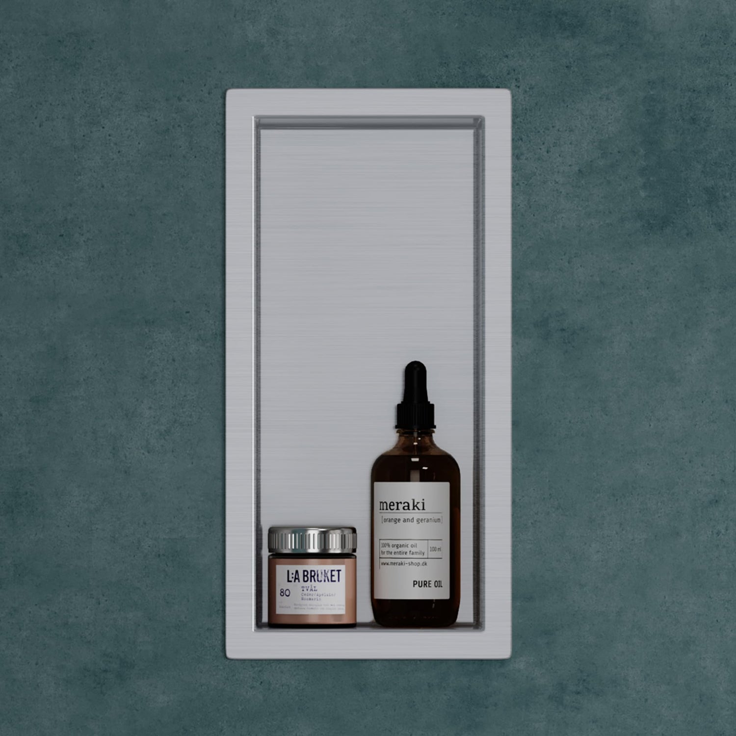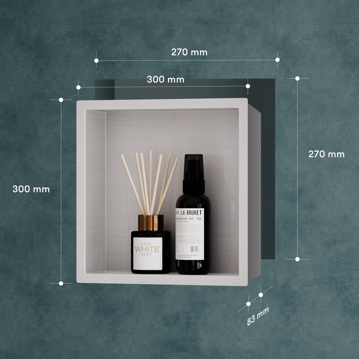 Die Wandnische ist aus hochwertigem Edelstahl gefertigt. Die Oberfläche der Nische ist gebürstet, wodurch die Nische rostfrei, stabil und langlebig ist. Der praktische Stauraum vereinfacht das Aufbewahren und Sortieren Ihrer Sachen. Es macht die Anordnung der Gegenstände nicht mehr unordentlich und ist dabei noch platzsparend.