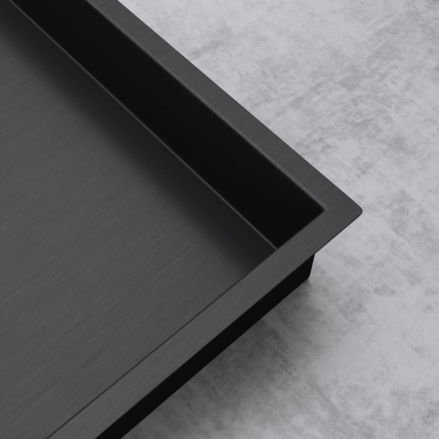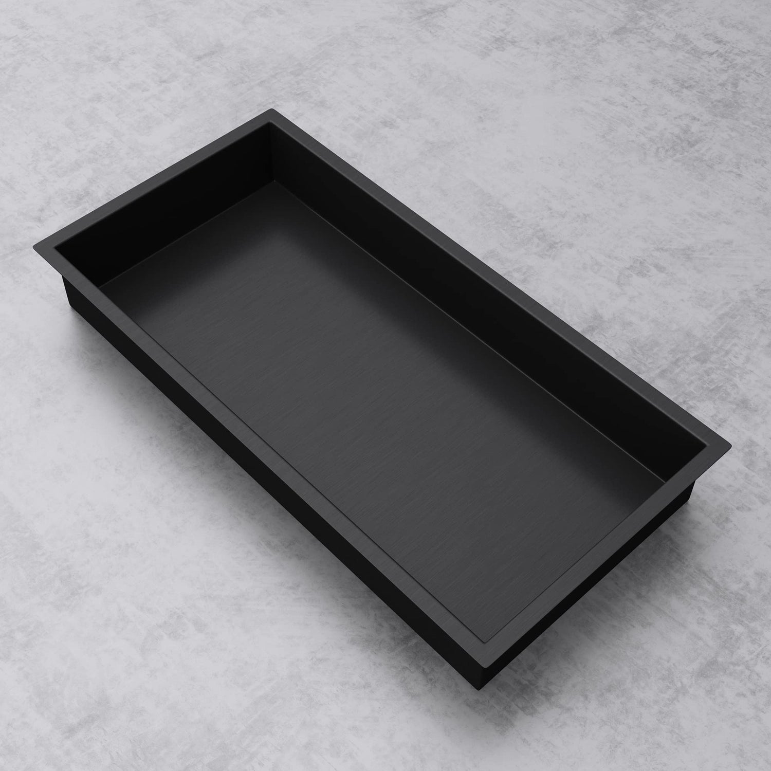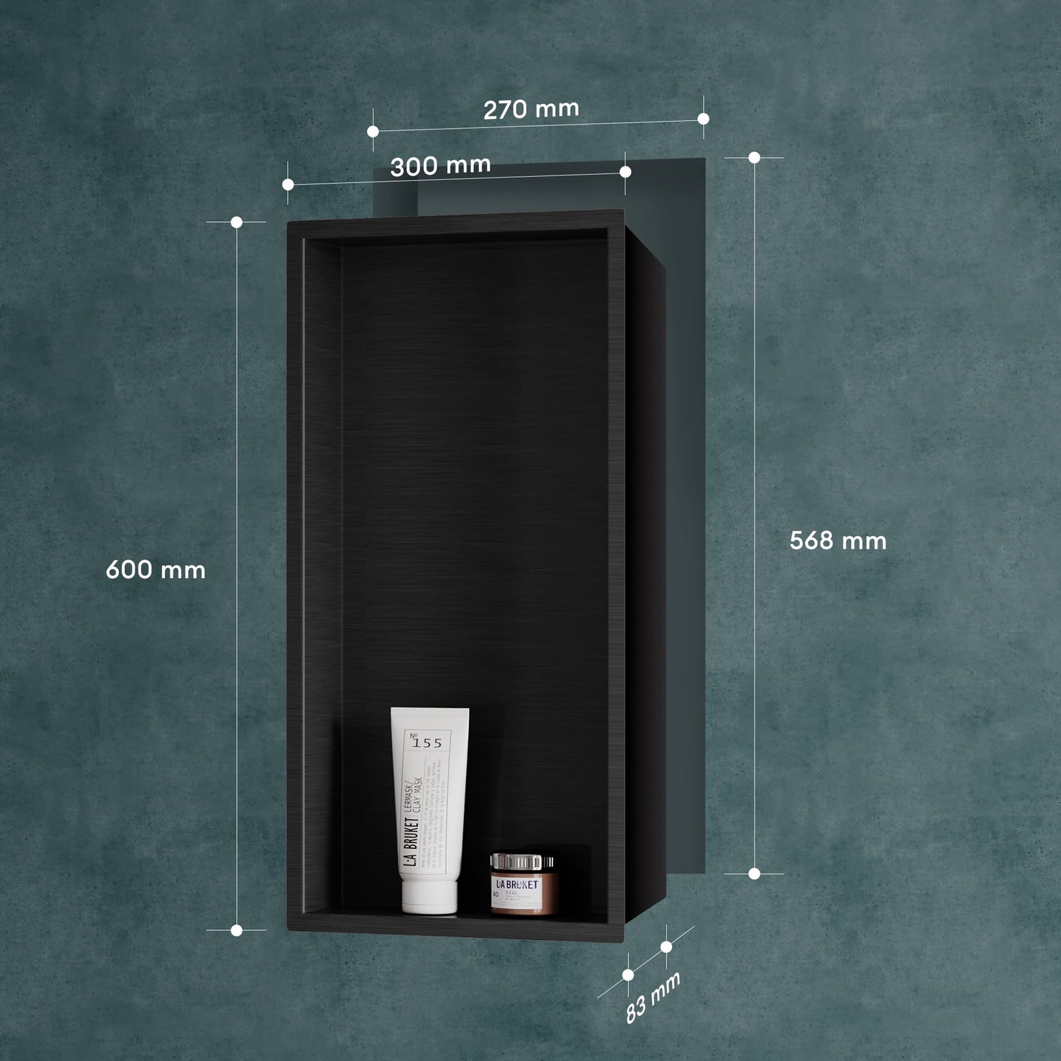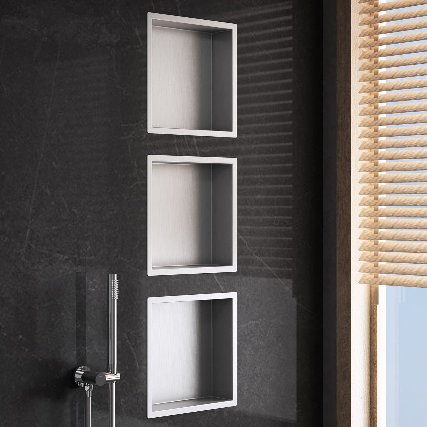 Die Wandnische ist aus hochwertigem Edelstahl gefertigt. Die Oberfläche der Nische ist gebürstet, wodurch die Nische rostfrei, stabil und langlebig ist. Der praktische Stauraum vereinfacht das Aufbewahren und Sortieren Ihrer Sachen. Es macht die Anordnung der Gegenstände nicht mehr unordentlich und ist dabei noch platzsparend.