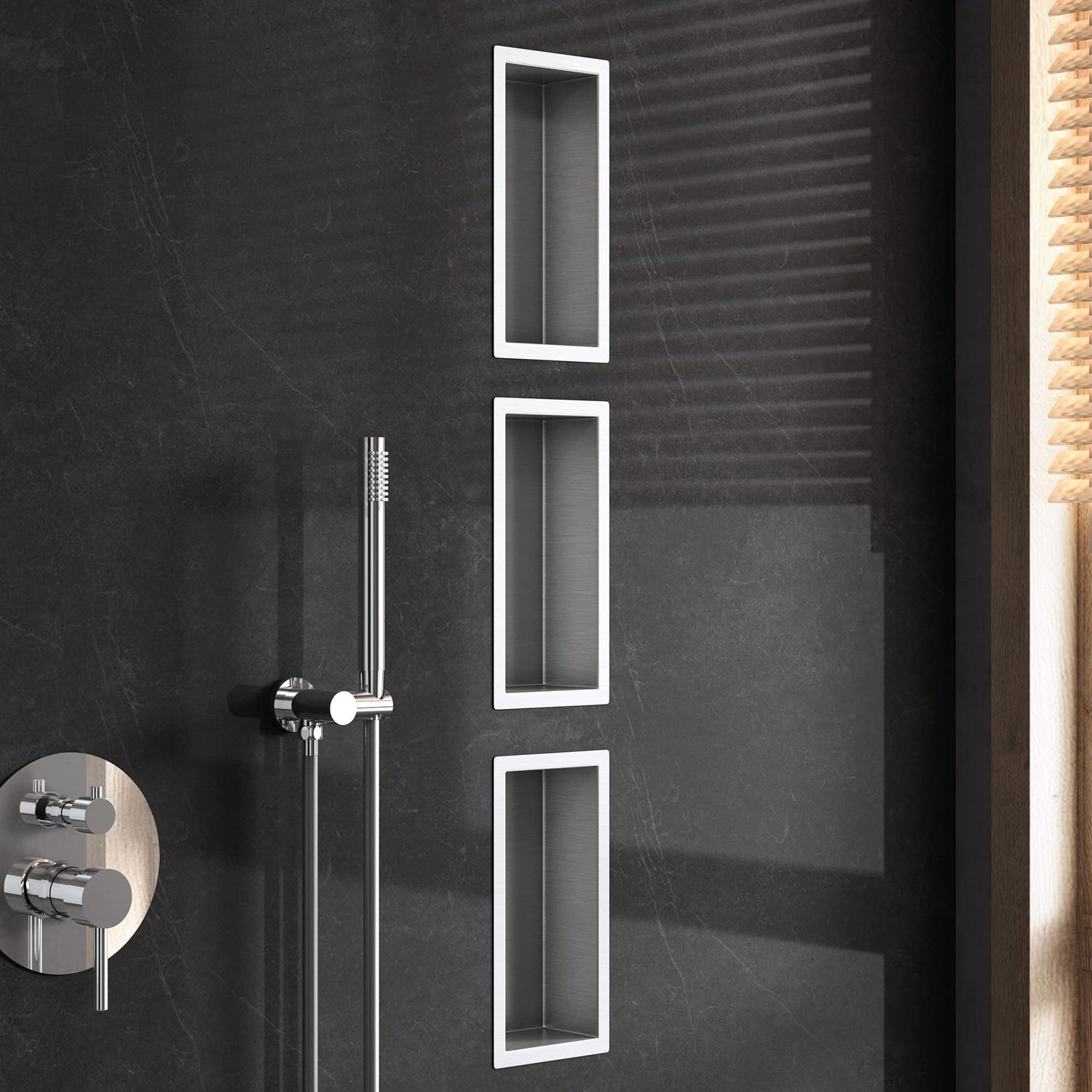 glasvilla Duschnische Bad Wandnische befliesbar aus Edelstahl Duschregal einfache Montage - 15 x 30cm / Weiß ist auf Lager und wird versandt, sobald es wieder verfügbar ist