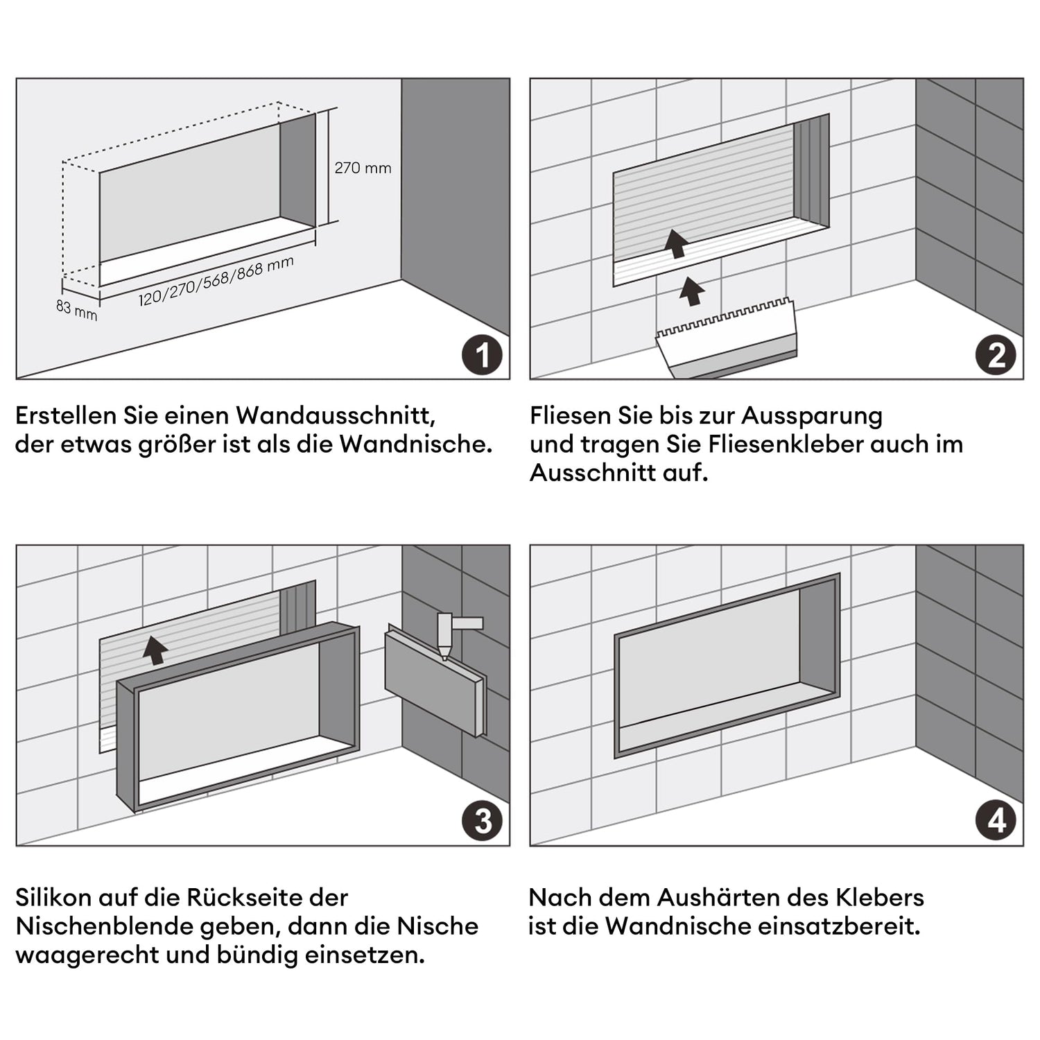 glasvilla Duschnische Bad Wandnische befliesbar aus Edelstahl Duschregal einfache Montage