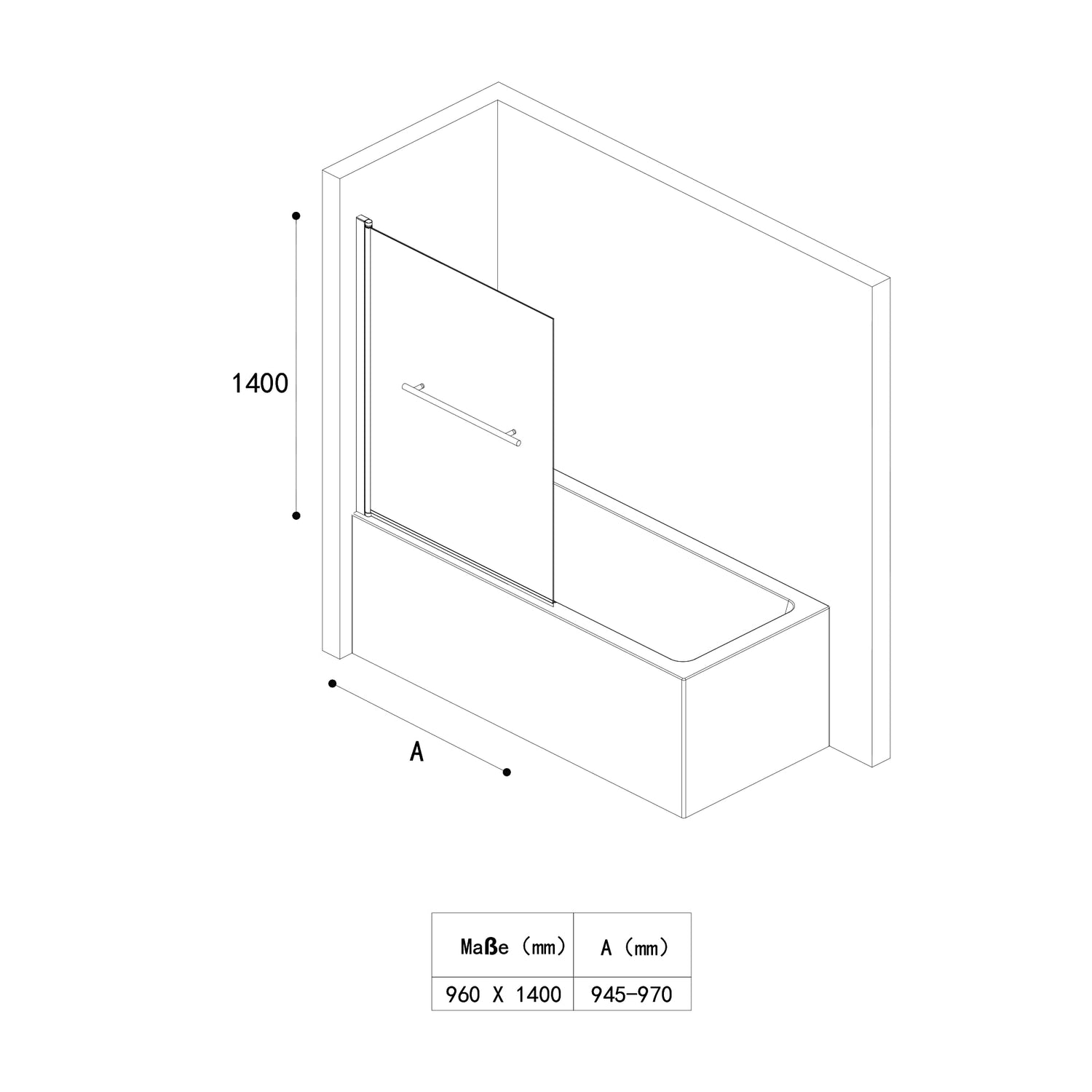 glasvilla Duschwand für Badewanne Badewannenwand faltbar 180° Sicherheitsglas mit NANO 90x140cm Badewannentrennwand Badewannenaufsatz Cortona1121
