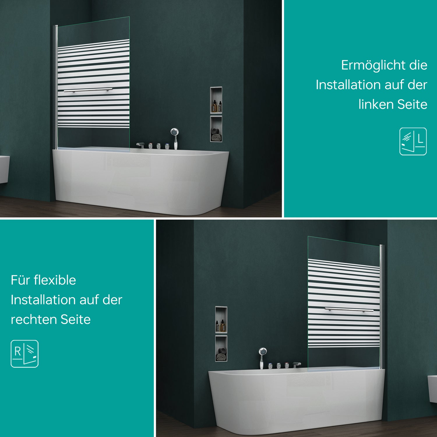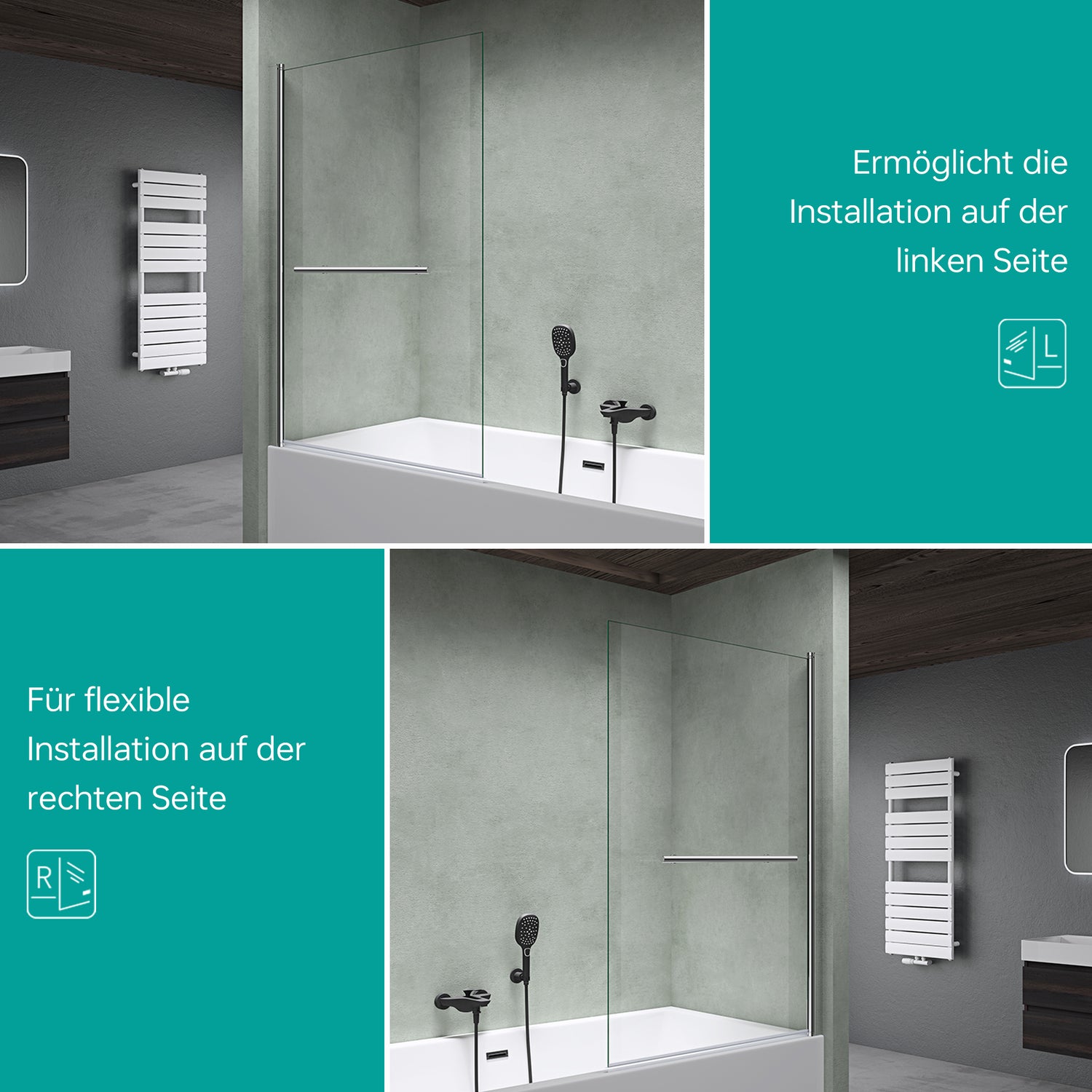 Die Duschabtrennung ist als Aufsatz für Ihre Badewanne geeignet. Durch das Glas wirkt ihr Badezimmer sehr edel.