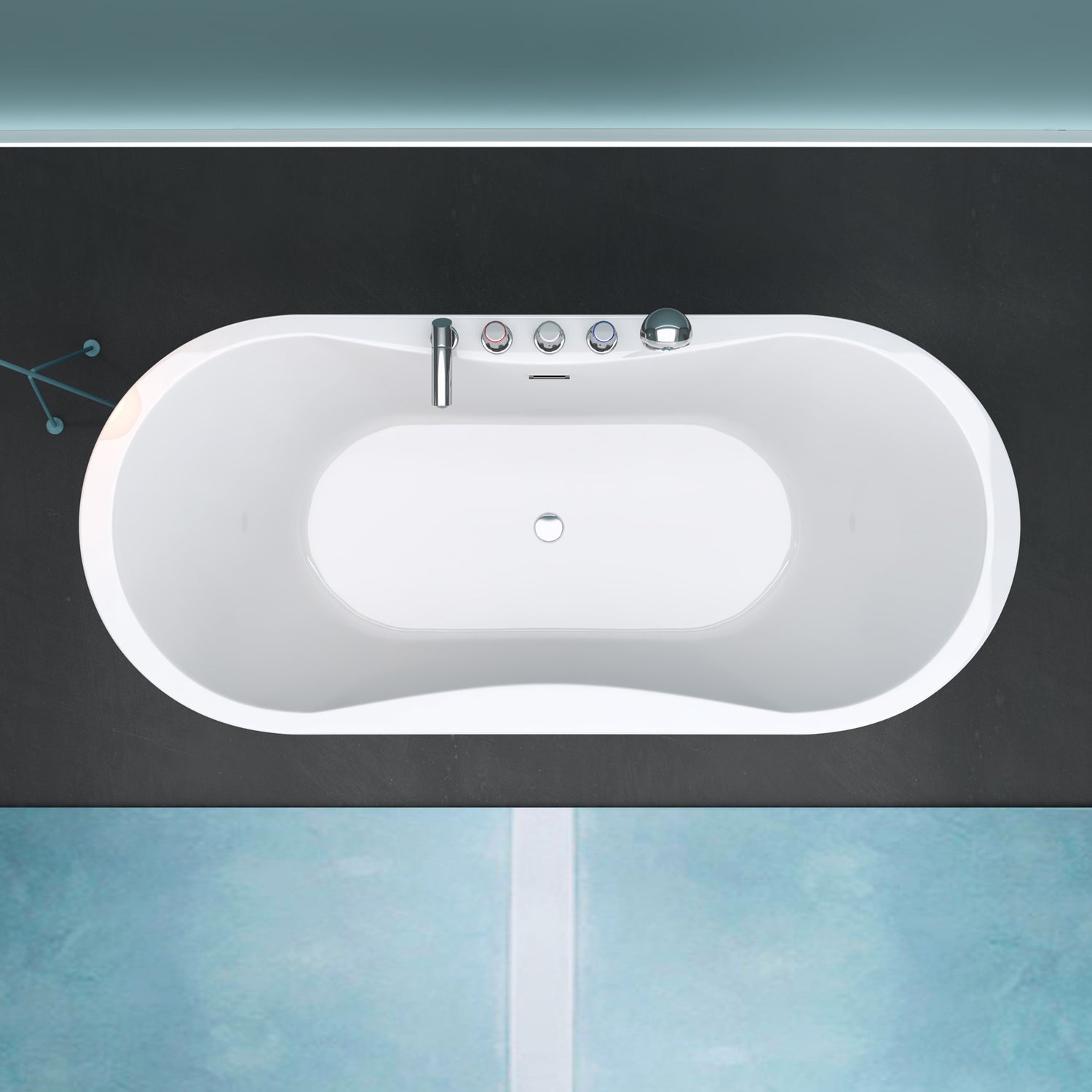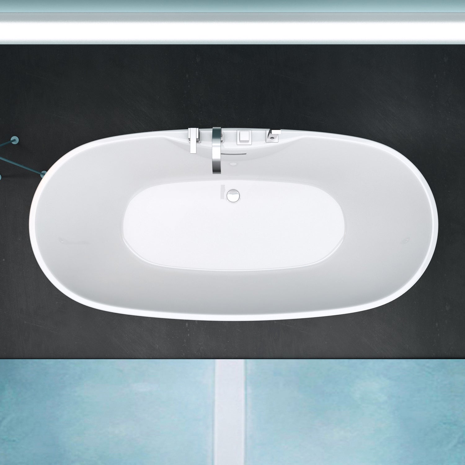 glasvilla Freistehende Badewanne Rechteck Sanitäracryl mit Armatur Standbadewanne