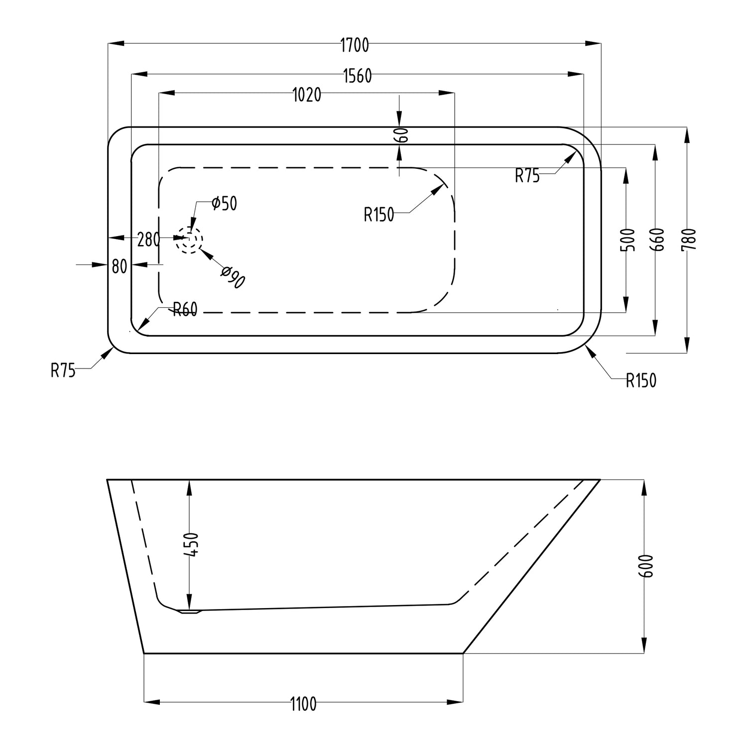 glasvilla Freistehende Badewanne Rechteck Sanitäracryl mit Armatur Standbadewanne - V601-170cm ist auf Lager und wird versandt, sobald es wieder verfügbar ist