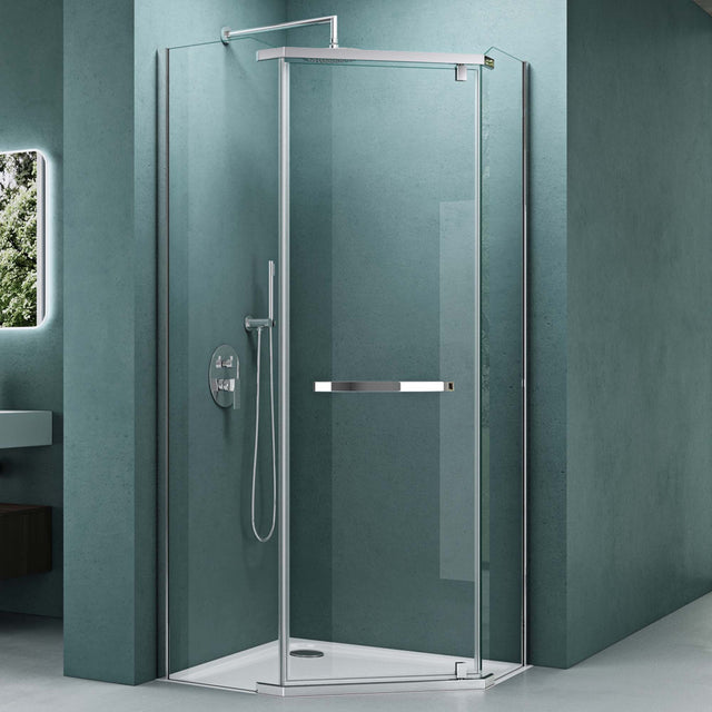 glasvilla Fünfeck-Duschkabine mit Duschtasse Duschwand Echtglas ebenerdige Montage möglich 8mm ESG Dusche Ravenna08