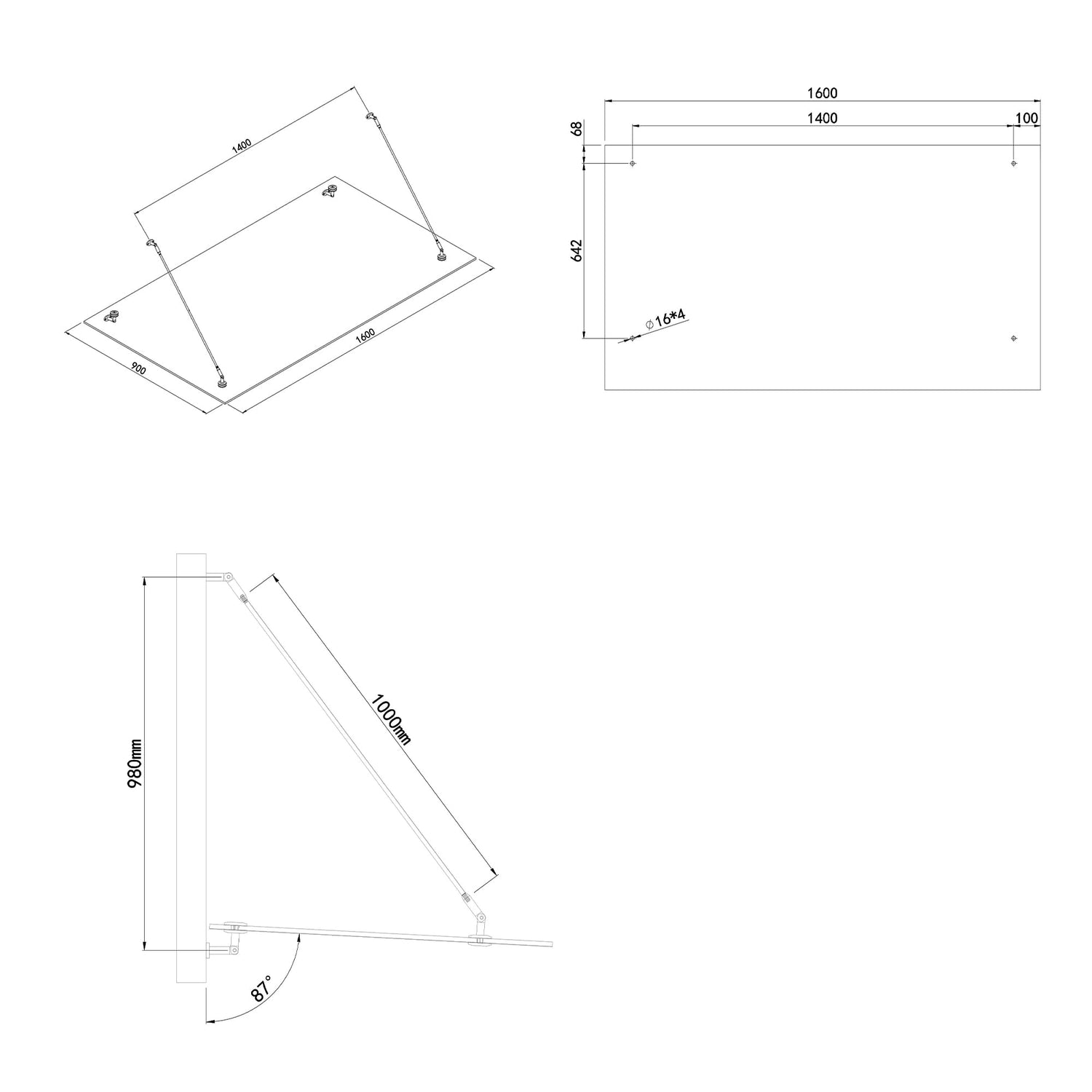 - glasvilla Vordach: Aus transparentem Glas + Edelstahlstangen, schlichtes und stilvolles Design, auch für Fenster geeignet. Maße:90x120 cm