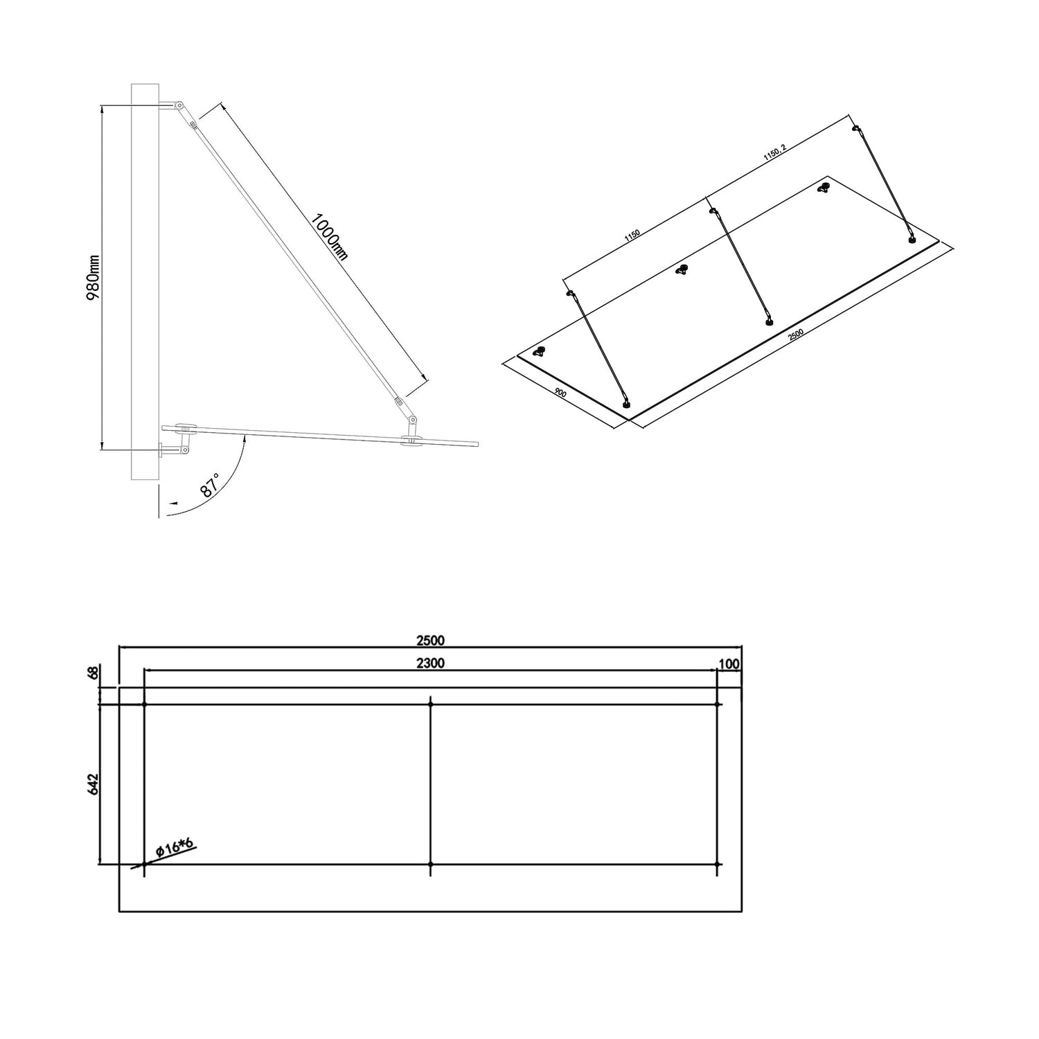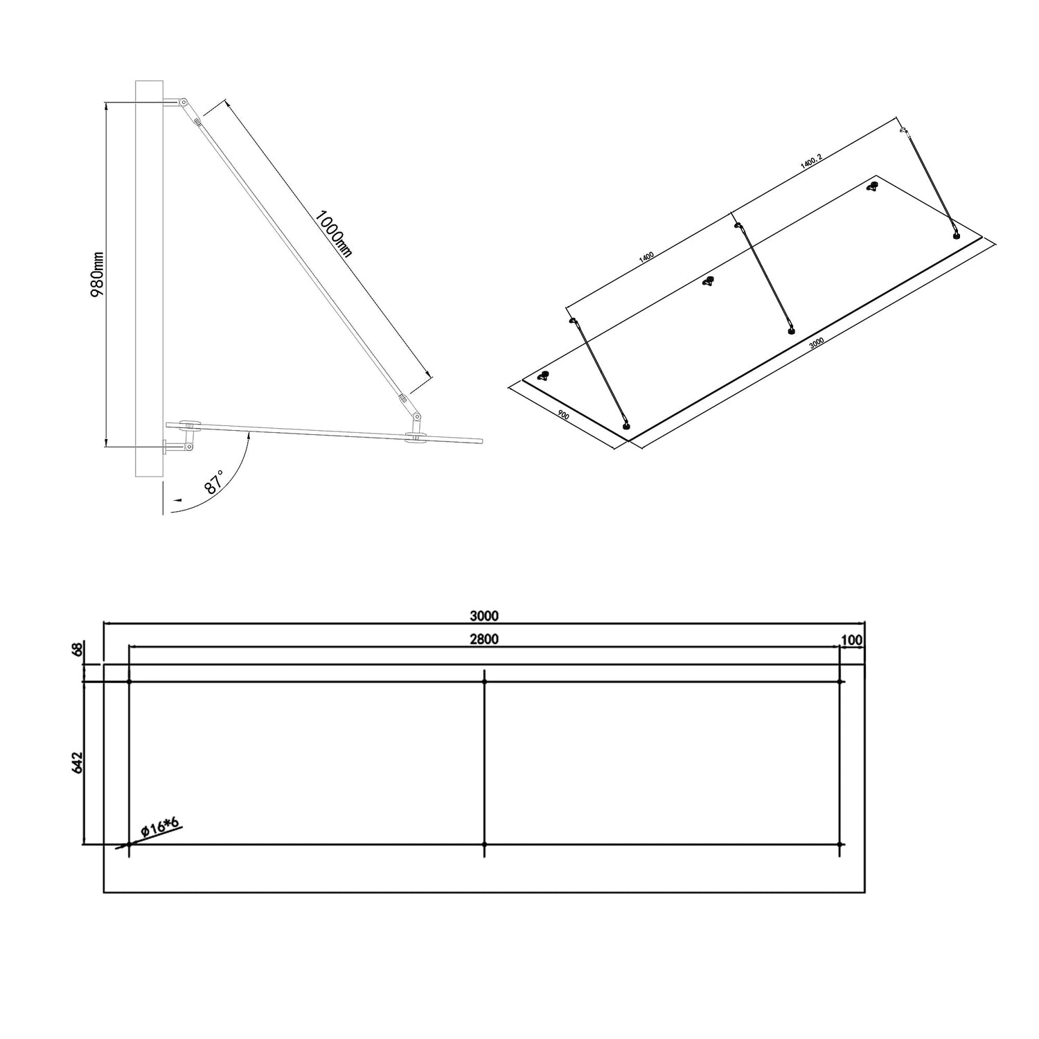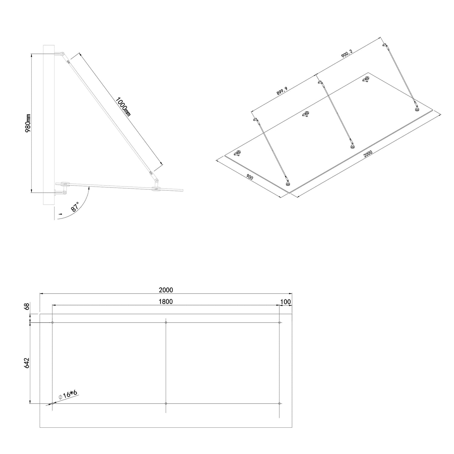 - Gute Entwässerungsleistung: Das Vordach hat einen 3° Neigungswinkel, damit ansammelndes Regenwasser rechtzeitig abfließen kann und Ihr Eingangsbereich dennoch vor Niederschlag geschützt ist. SGP-Verbundglas hat außerdem die Eigenschaft, dass es nicht leicht Staub und Fremdkörper anzieht