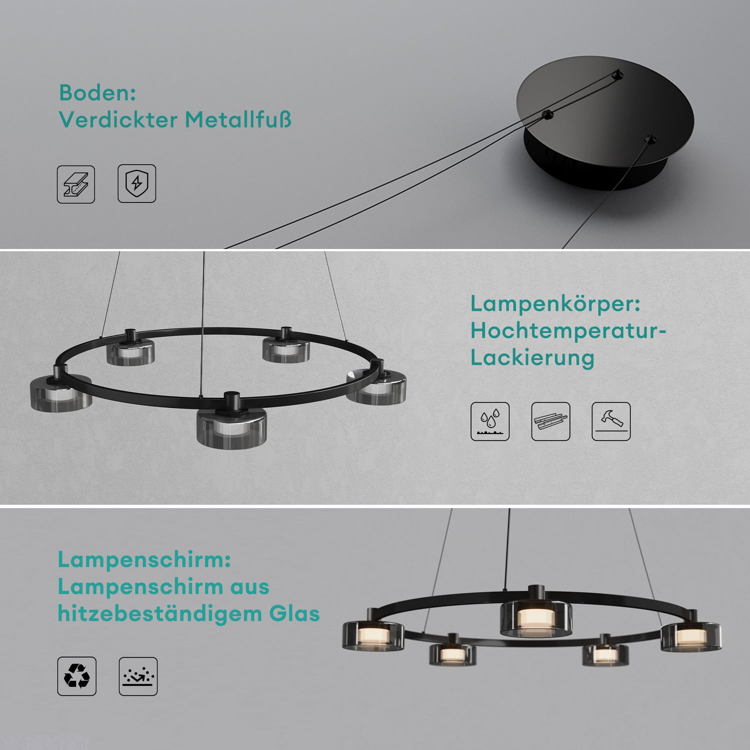 - Material: Metall + Glas