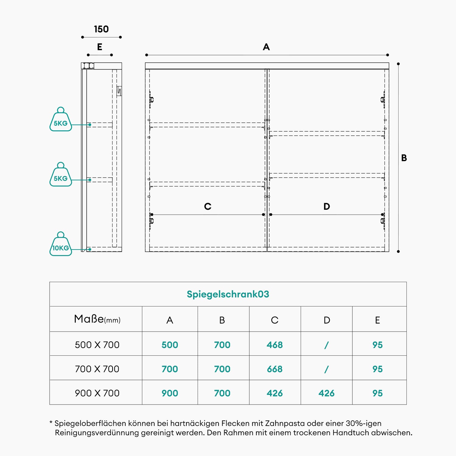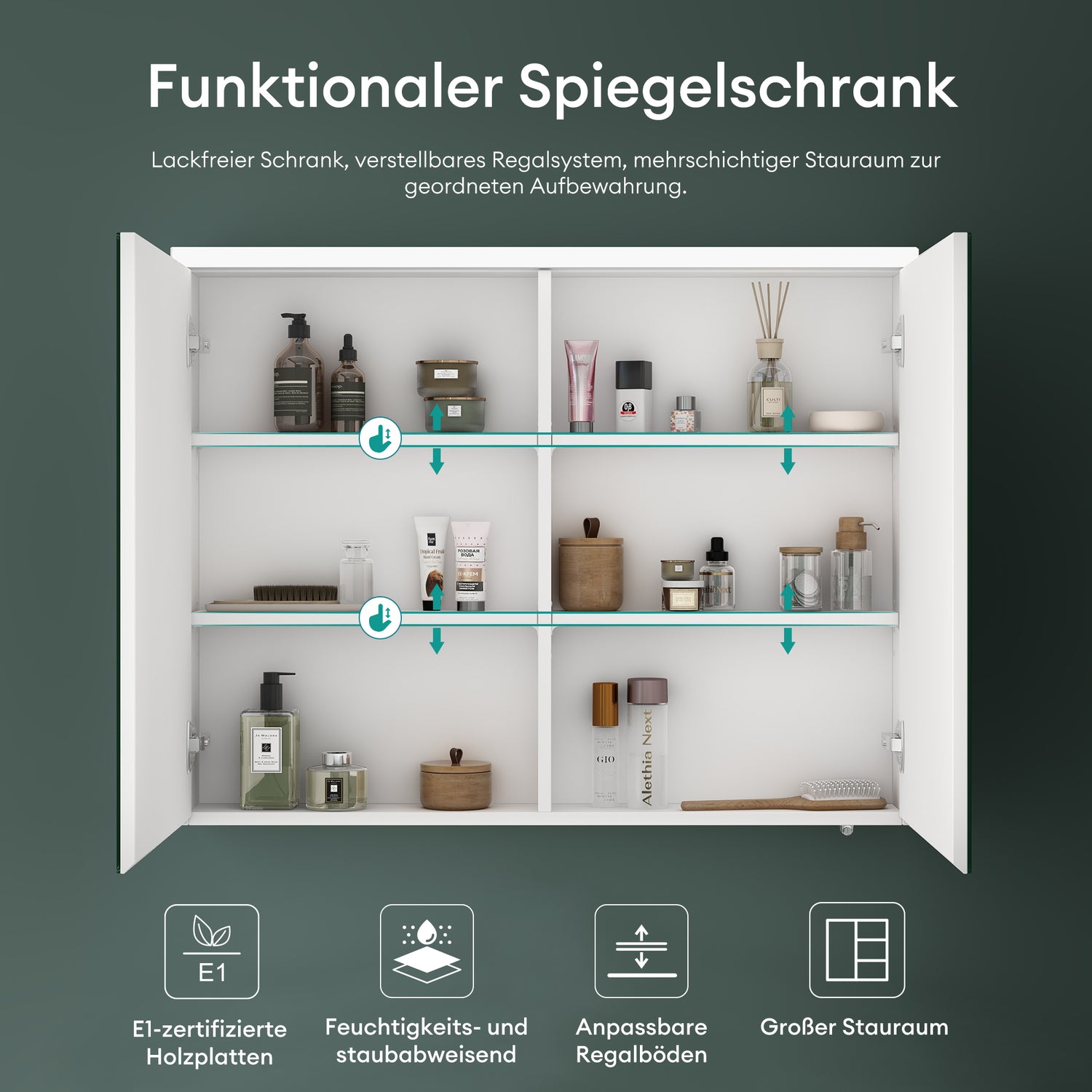 glasvilla Spiegelschrank Bad mit LED Beleuchtung Badezimmerschrank Hängeschrank Badezimmerspiegel Spiegelschrank-03
