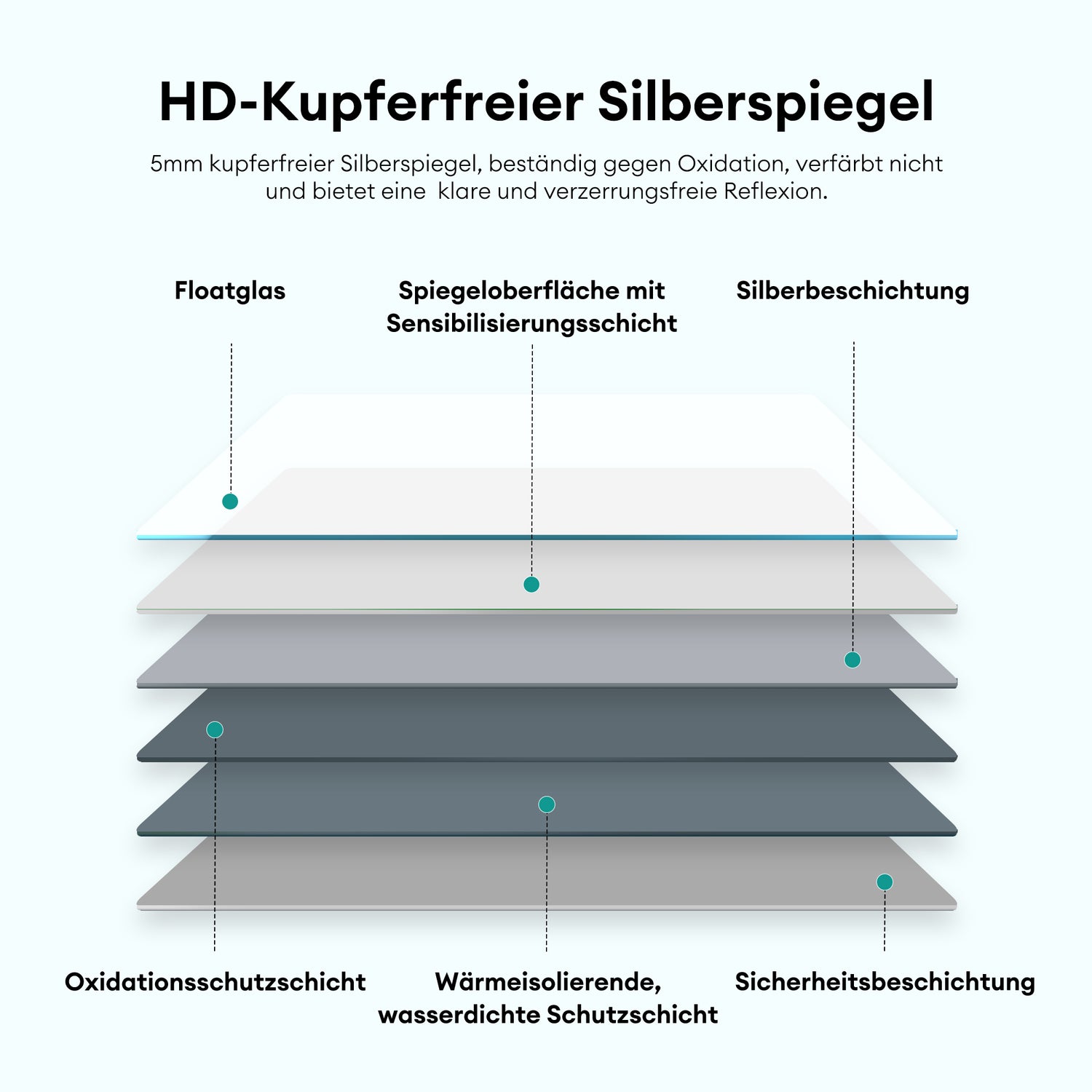 Der Schrankspiegel besteht aus einem 5 mm dicken, hochauflösenden, kupferfreien Silberspiegel, der nicht leicht rostet und das Bild klar hält.
