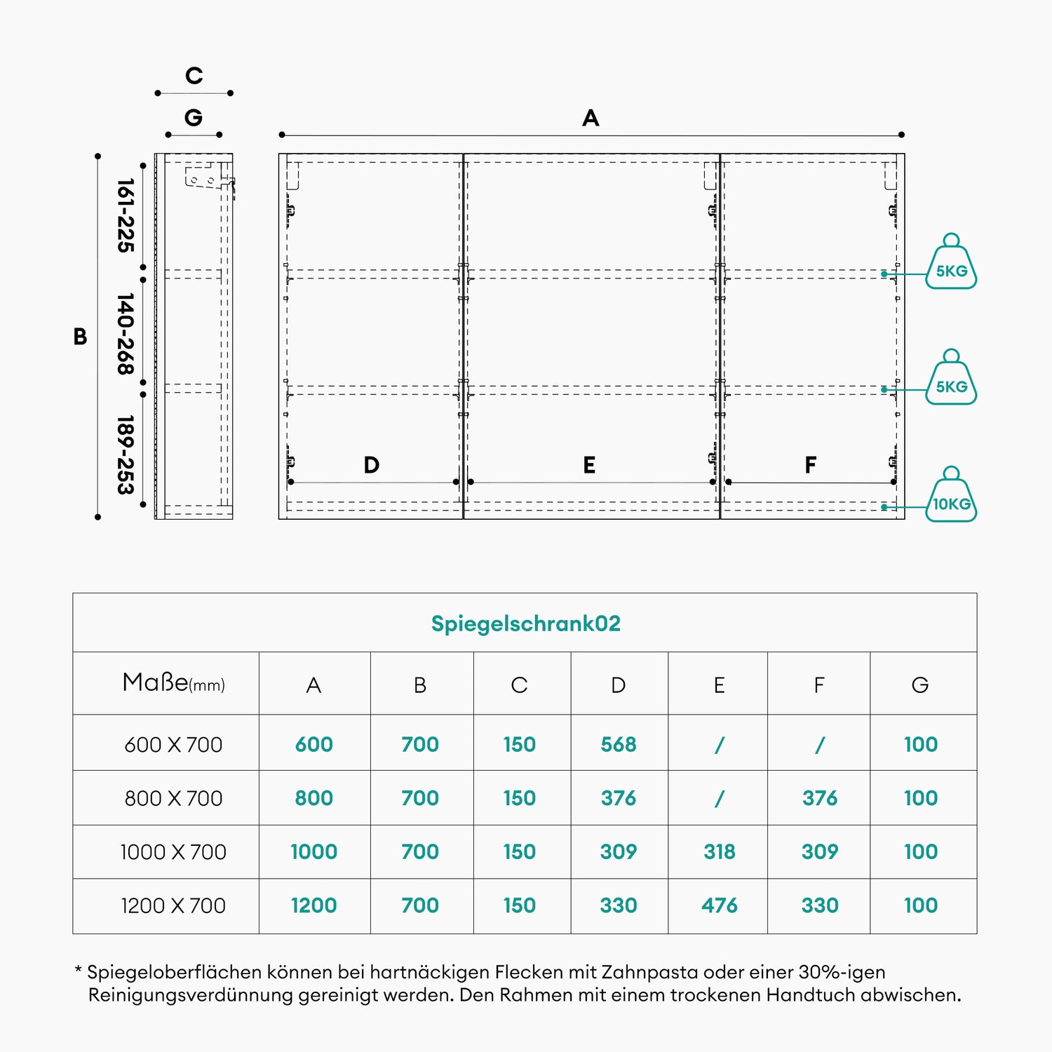 glasvilla Spiegelschrank mit Spielgeltüren Badezimmerschrank Hängeschrank Badezimmerspiegel Spiegelschrank-02