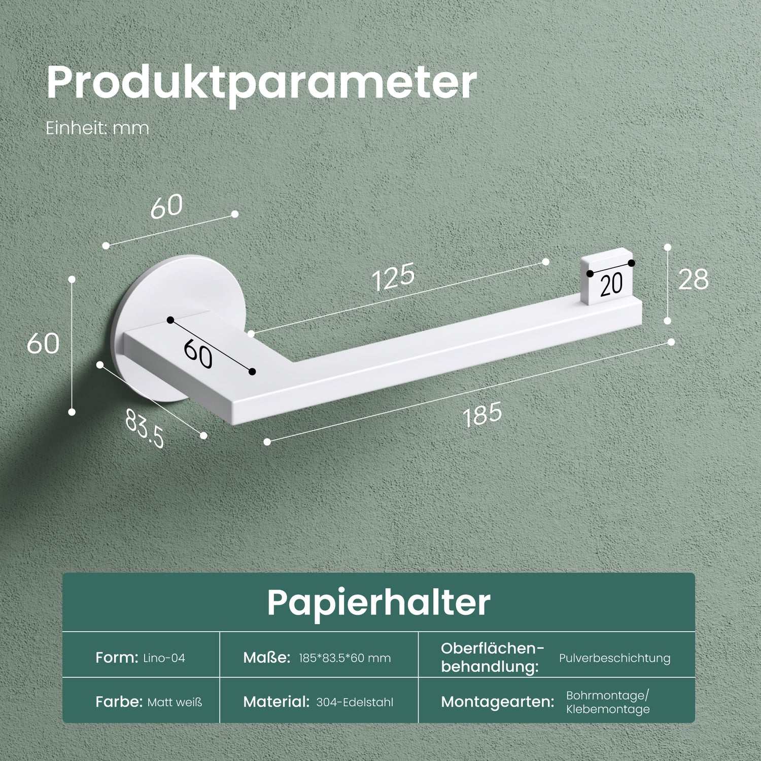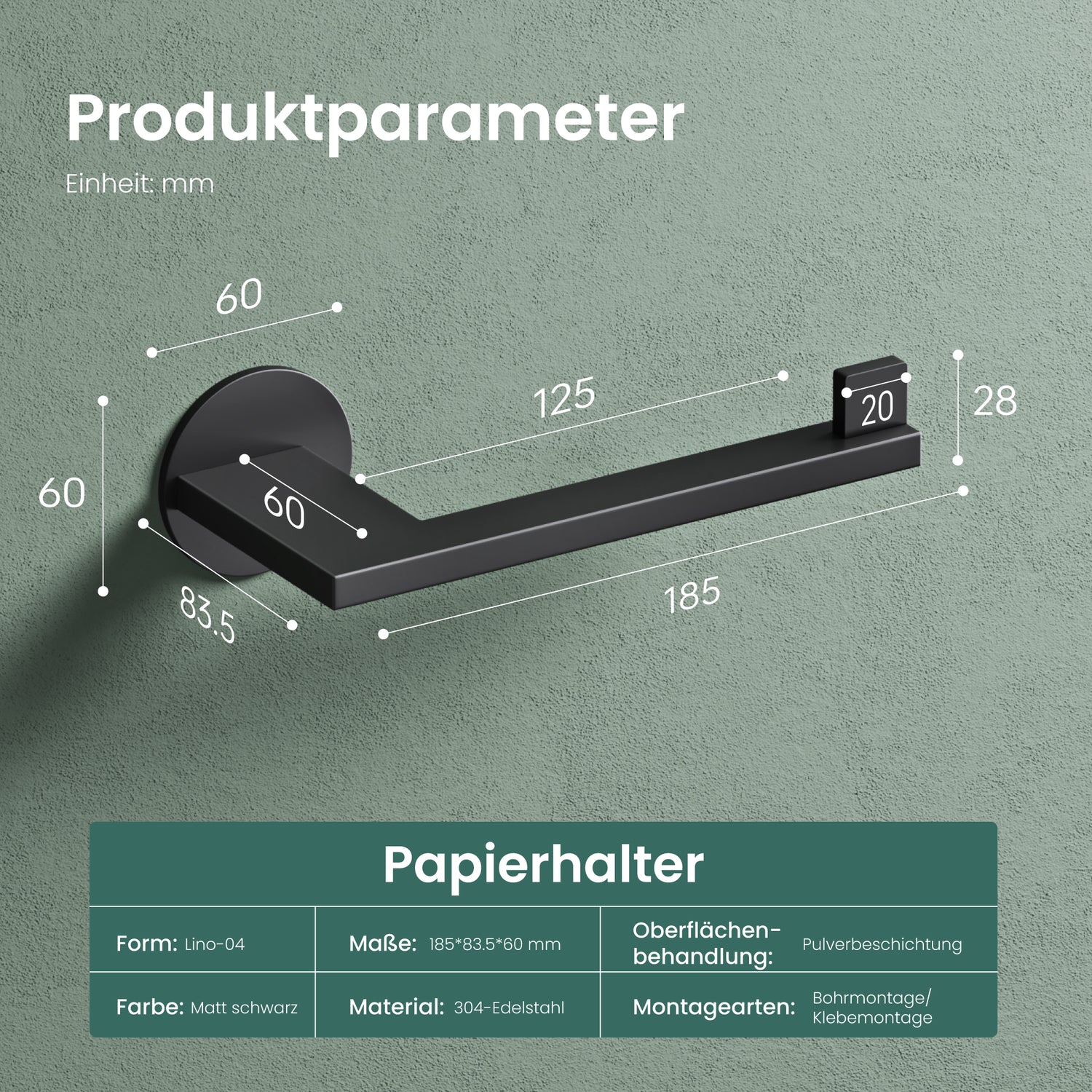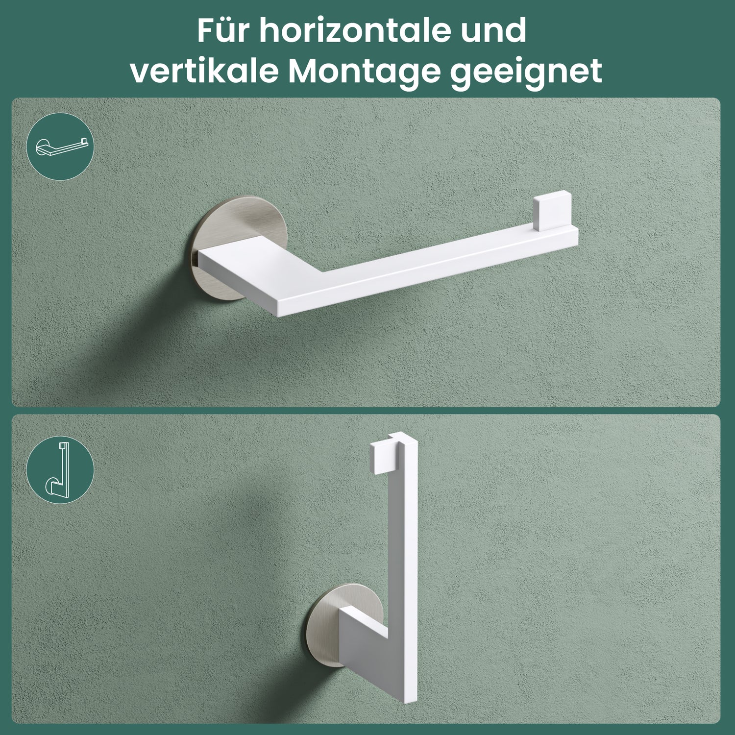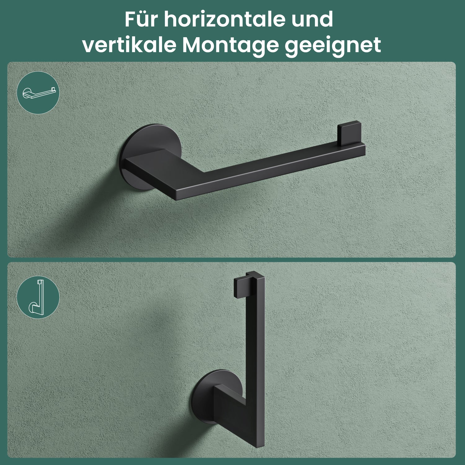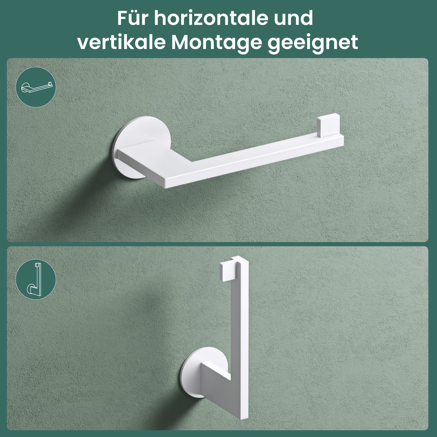 - 2-in-1 Nutzung: Der Toilettenpapierhalter kann horizontal oder vertikal montiert werden und passt sich so jedem Badezimmer perfekt an (Lino-02-03-04)