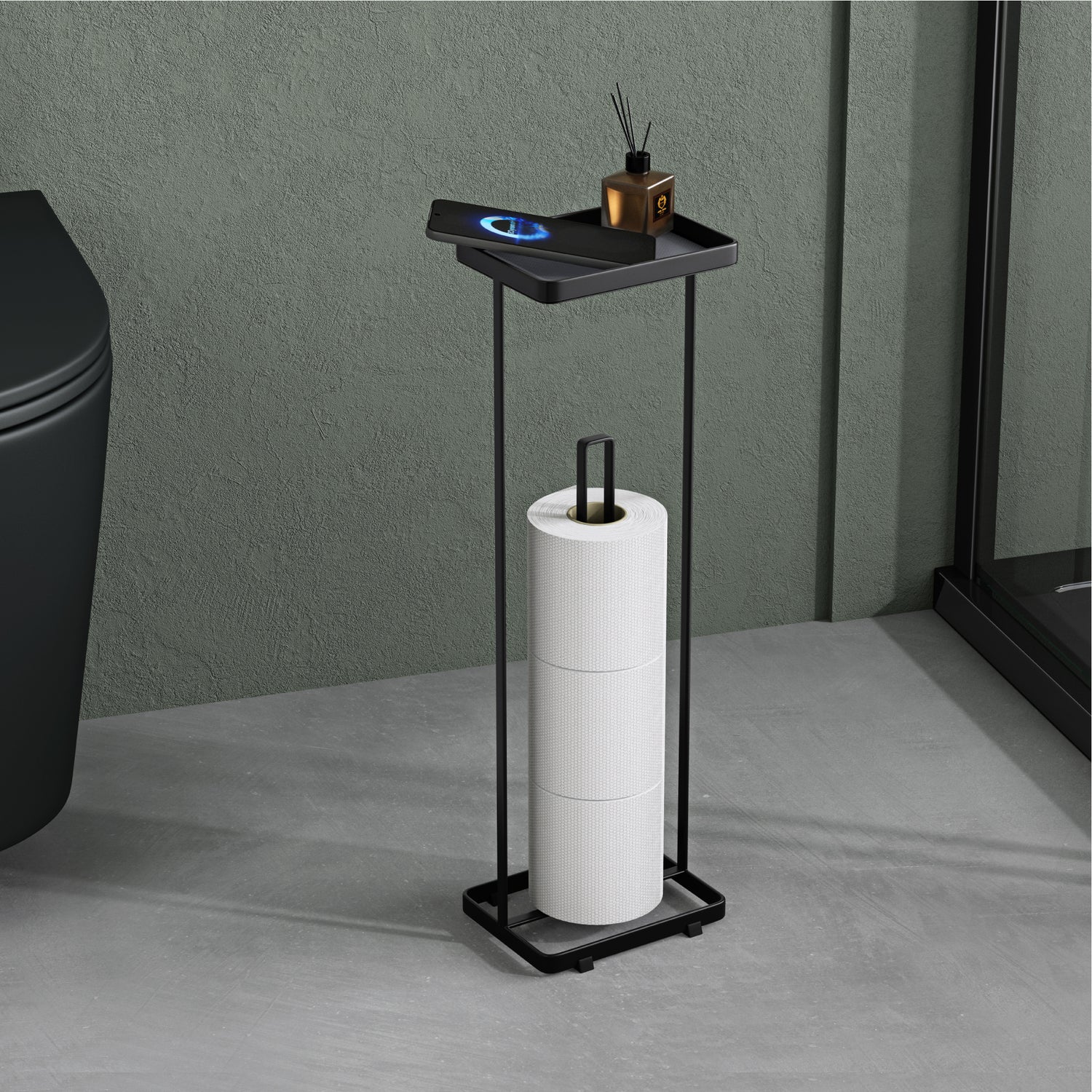 glasvilla Toilettenpapierhalter stehend mit Ablage Klorollenhalter Klopapierhalter freistehend WC Rollenhalter Toilettenständer 16x12x52cm Reglo-04 - Matt Schwarz ist auf Lager und wird versandt, sobald es wieder verfügbar ist