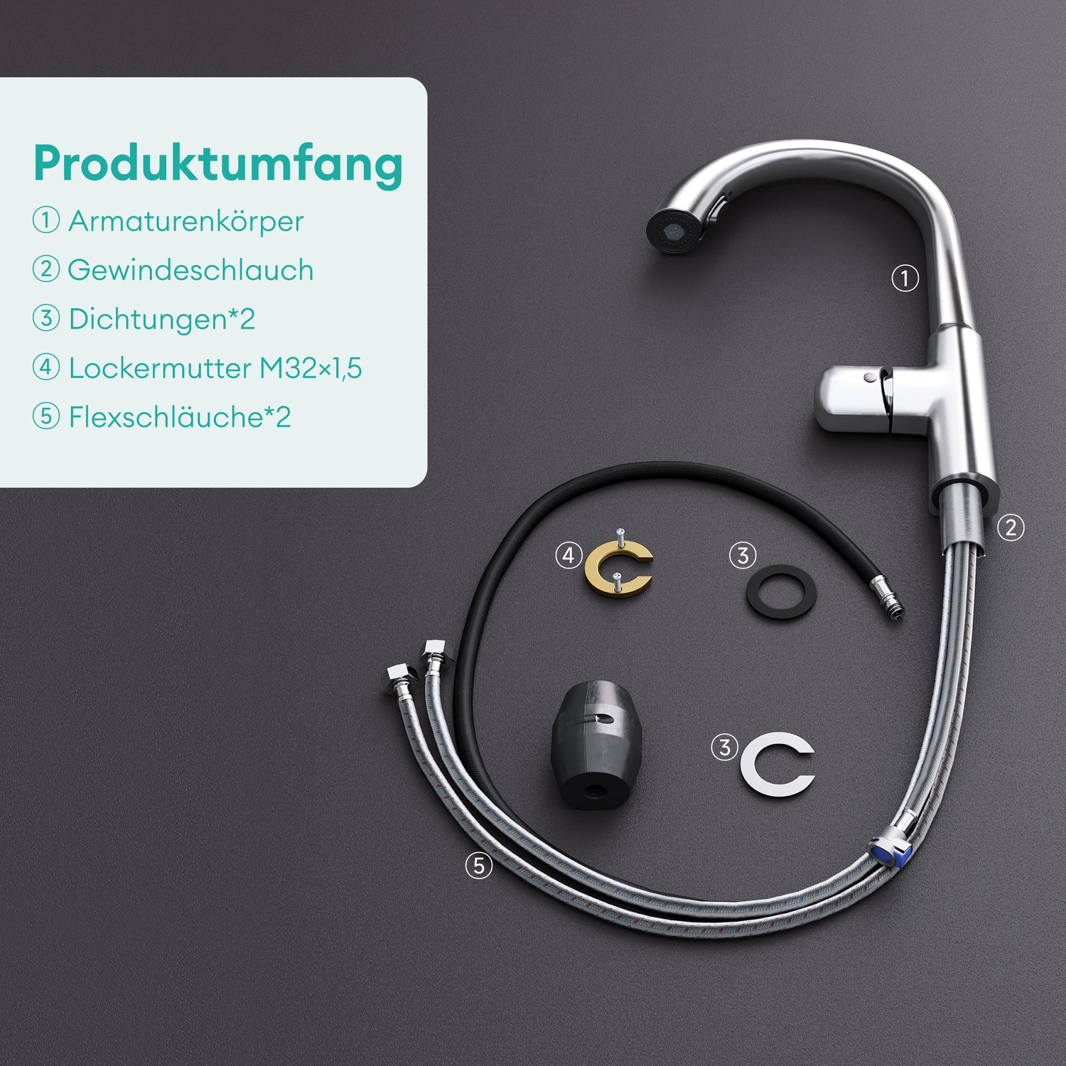 - Einfache Installation: mit zwei 60 cm Geflochtener Flexschläuche, allen Montagematerialien und Installationsanleitung für eine schnelle und unkomplizierte Montage