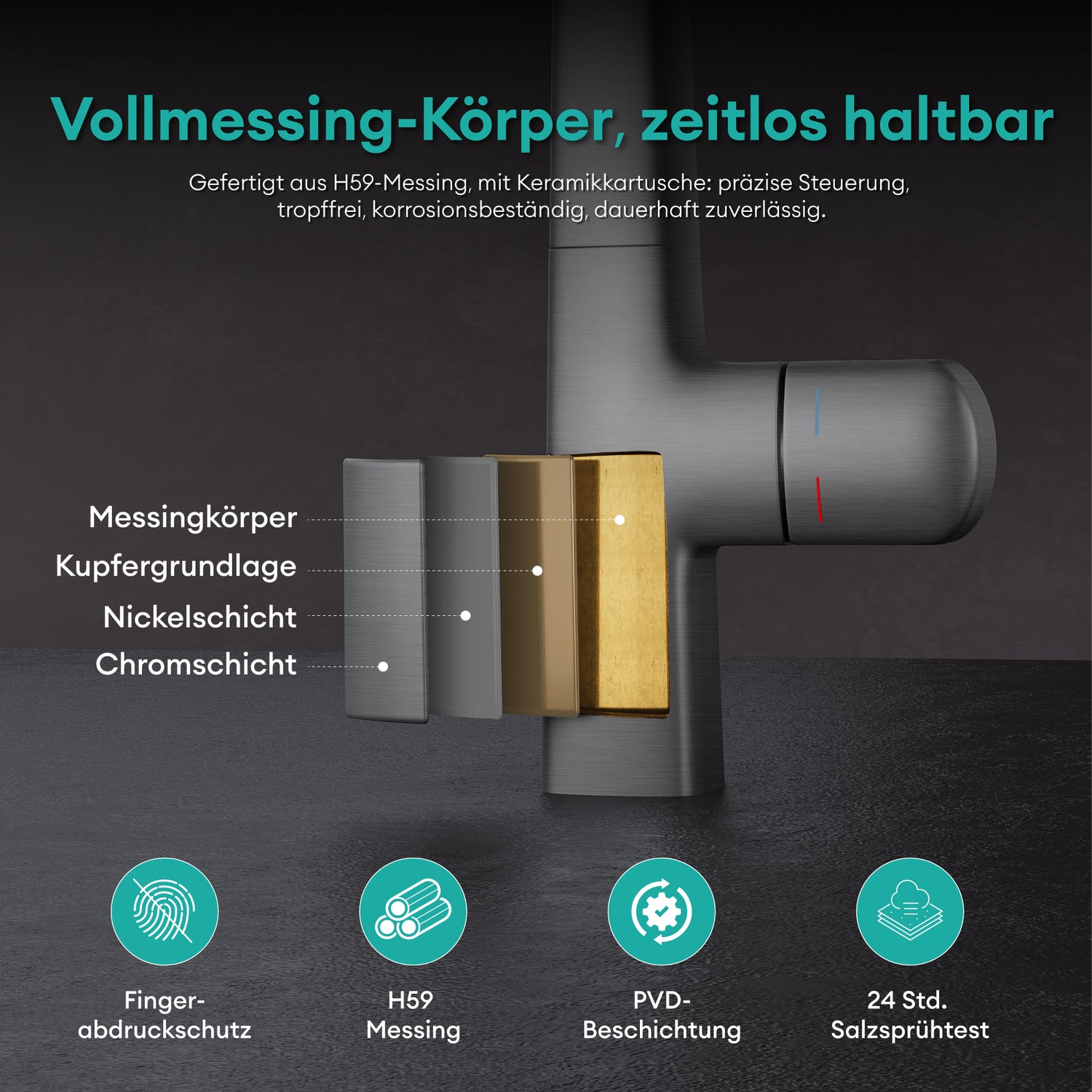 - Einhebelmischer mit Keramikkartusche: Präzise Steuerung von Warm- und Kaltwasser sowie Wassermenge, tropfsicher und langlebig dank hochwertiger Keramikkartusche